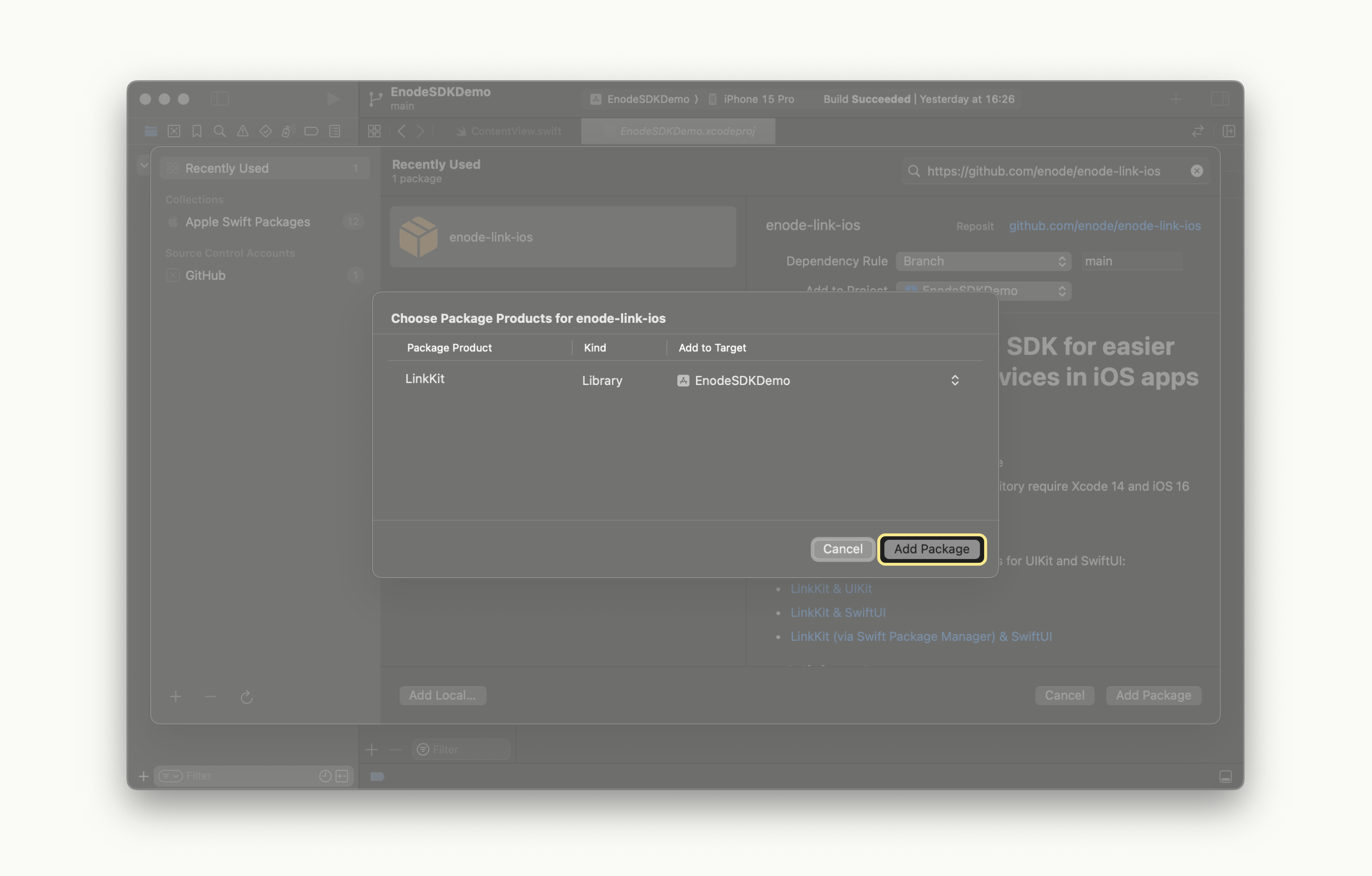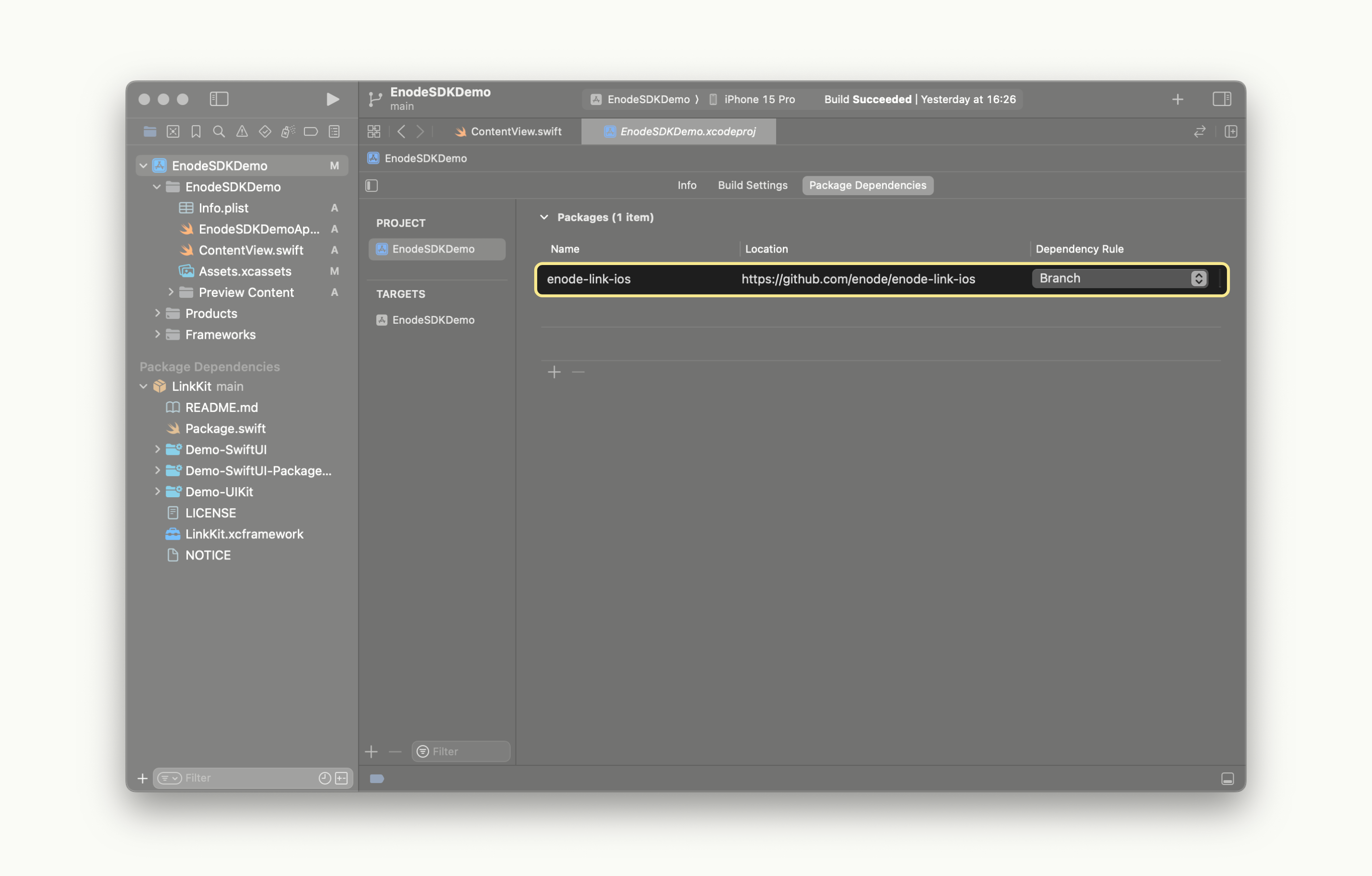 enode-link-ios should now be among items in the "Packages" section: