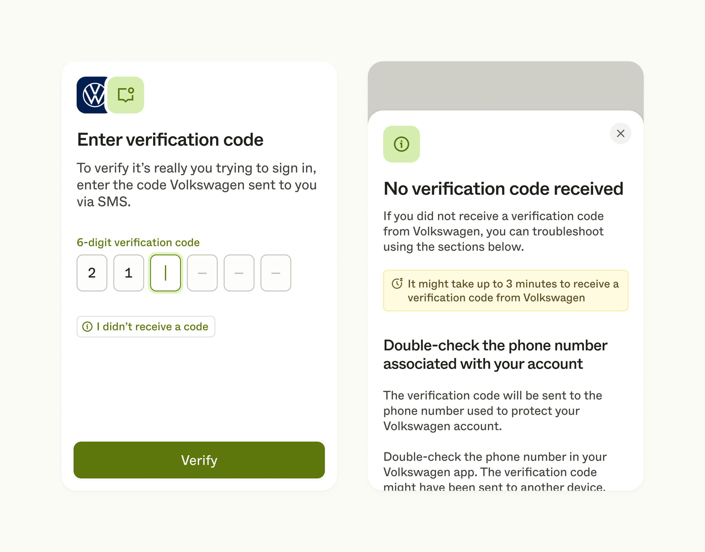 Following the initial sign-in step, your user might also be presented with a verification step before they are successfully signed in. This additional two-factor authentication step will be shown to your user if it’s required by the brand. Options can range from SMS or e-mail code verification, to app verification to a personal PIN.