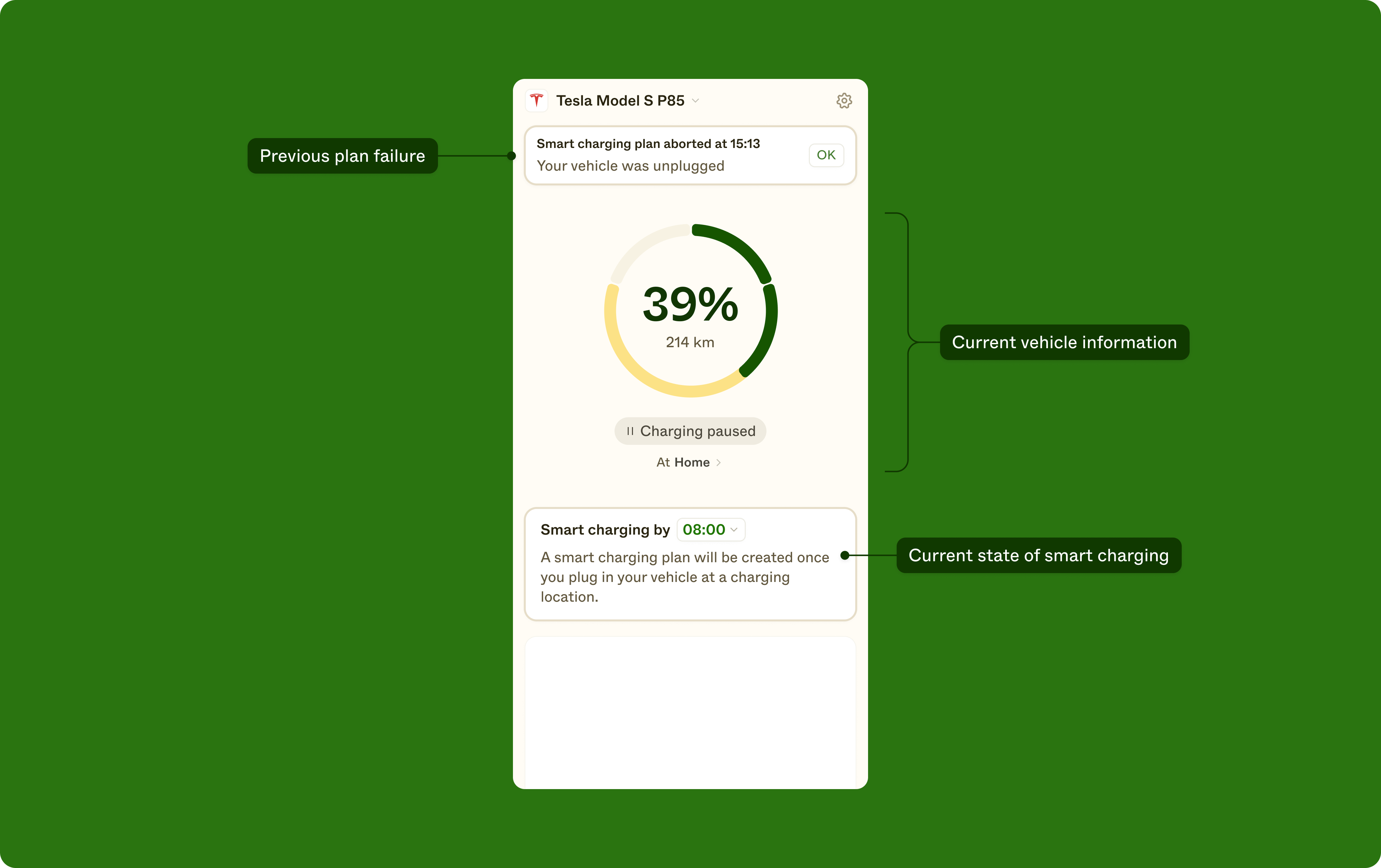 Since smart charging intercepts the default charging behavior your users are familiar with, clear communication and structured information are essential to ensure they can always stay on top of their vehicle’s charging.