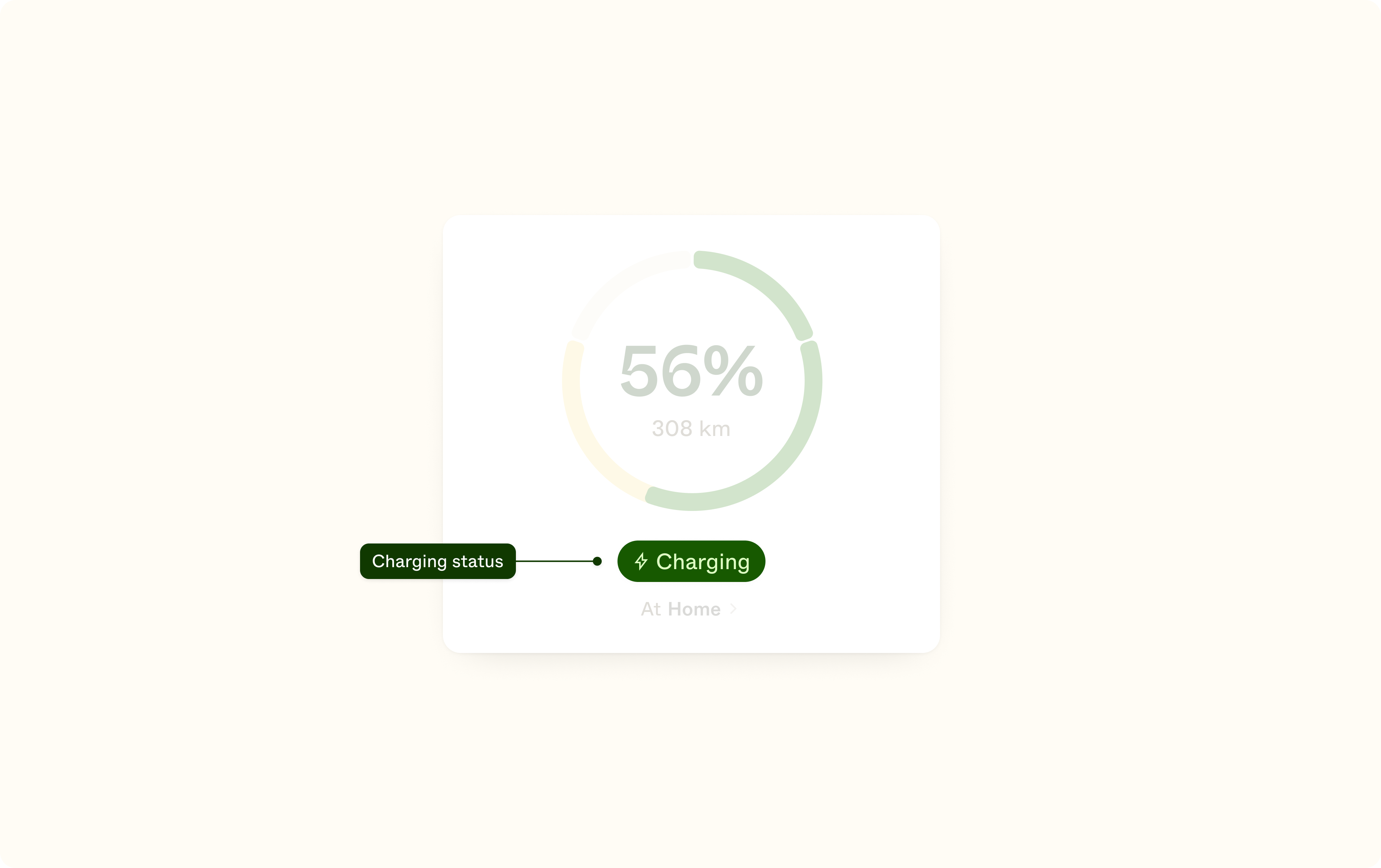 - Vehicle information — Always relevant information covering reachability, state of charge, charge status, and location.