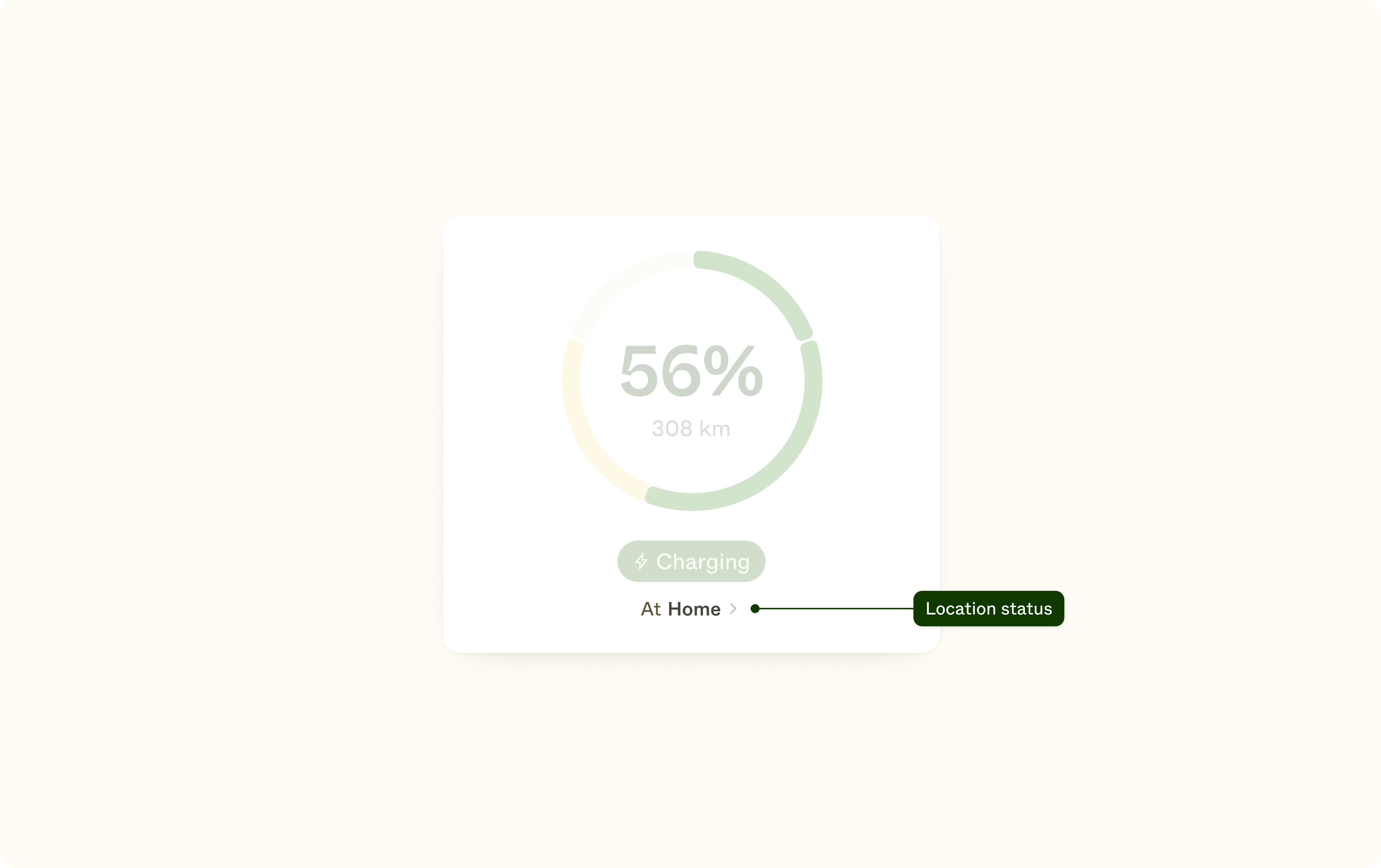 A reflection of the vehicle location and whether it is currently at a charging location. When the vehicle is plugged in at a charging location, it validates this for the user. When not, it is a subtle reminder of why smart charging is not currently generating a plan.